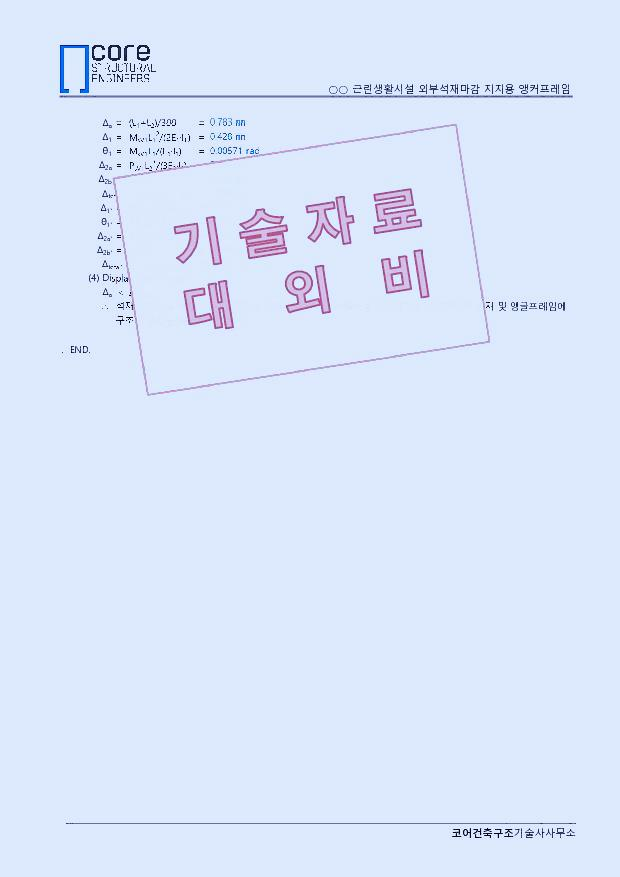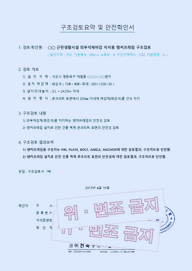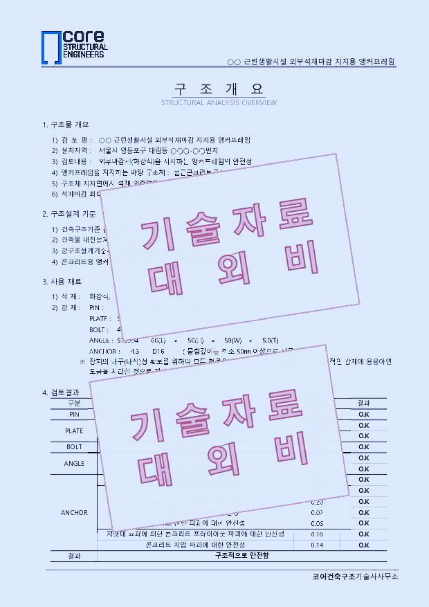 해당 건축구조기술사사무소의 업무상 비밀 및 기술관련 비밀을 보호하기 위하여 「기술사법」 제9조(비밀엄수 의무) 및 기타 법 등에 따라 민감한 내용은 마킹처리 하였음은 양해바랍니다.