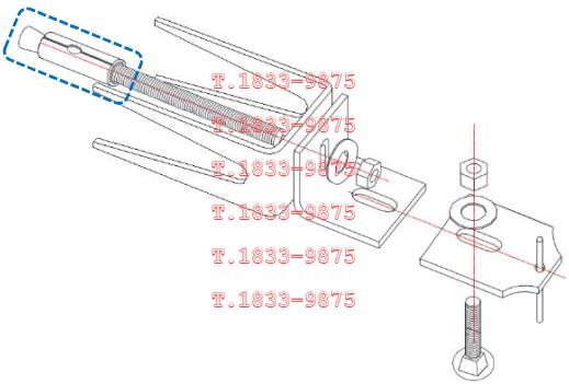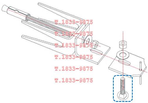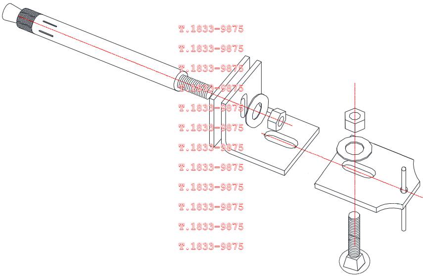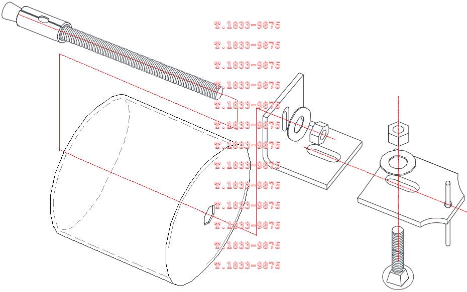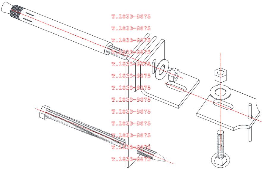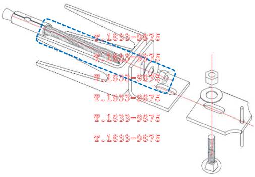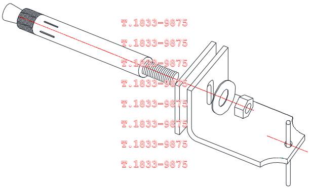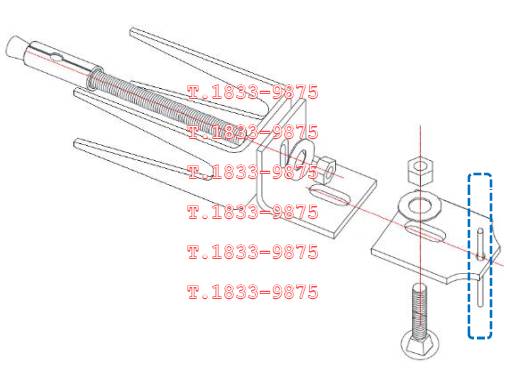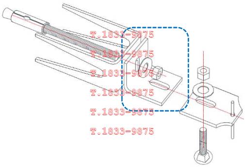 | 앵커는 몸통부분이 콘크리트 내에 매입되고 볼트부는 콘크리트 면 밖으로 돌출되어 말굽형지지대를 관통하여 앵글판에서 너트로 체결된다. 볼트부는 강재 인장파괴가 되지 않고 안전한지 검토한다. 소요인장강도는 말굽형이나 실린더형 또는 지지볼트 추가형으로 지지구조체가 있는 경우로서 더욱 불리하게 지렛대효과로 발생하는 인장력으로 산정한다. 설계인장강도는 앵커볼트가 콘크리트에 지지되므로 KDS 14 20 54 콘크리트용 앵커 설계기준에 따라 취성강재요소의 강도에 의해 지배되는 인장력을 받는 앵커로서의 강도감소계수를 적용하여 산정한다. |