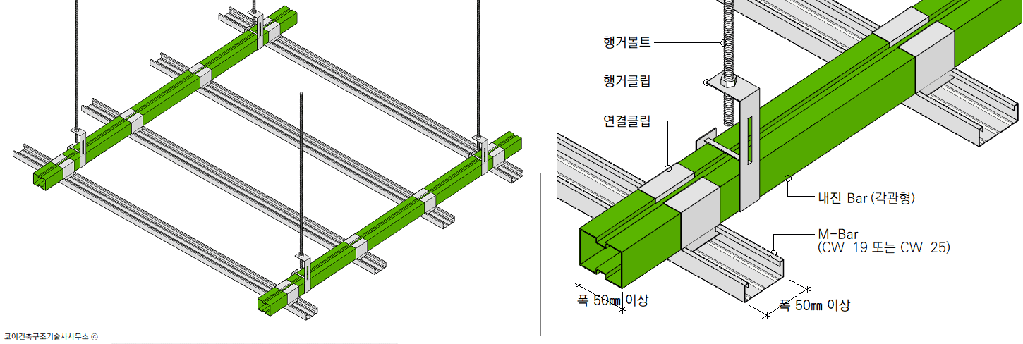 비구조요소 "매달린 천장" T바형 내진설계 안전확인 사례