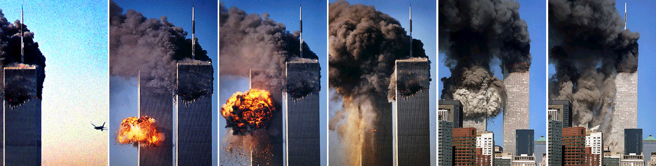 2001년 9월 11일, 이슬람 테러단체 알카에다는 빈라덴의 지시로 테러범 19명을 5인 3조와 4인 1조로 구성하여 민간항공기 4대를 공중에서 납치했습니다. 각 조마다 비행 훈련을 받는 자가 한 명씩 있었고, 그들은 납치한 비행기를 WTC 북쪽 타워와 남쪽 타워, 그리고 국방부 펜타곤에 충돌시켰습니다. 나머지 한 대는 워싱턴에 있는 국회의사당이나 백악관을 노렸는데, 비행기에 탑승한 승객들이 강렬히 저항하여 펜실베니아주 샹크스빌 근처 들판에 추락했습니다. 가장 먼저 WTC 북쪽 타워에 충돌한 비행기는 승객(승무원과 테러범 포함) 92명이 탑승한 보잉767-223ER기종 American Airlines Flight 11편이었고, 두번째는 20여분 뒤 승객 65명을 태우고 WTC 북쪽 타워에 충돌한 보잉767-333기종 United Airlines Flight 175편이었고, 세번째는 그 후 30여분 뒤 승객 64명을 태우고 펜타곤에 충돌한 보잉757-223기종 American Airlines Flight 77편이었으며, 마지막은 그로부터 20여분 뒤 승객 44명을 태우고 샹크스빌 근처 들판에 추락한 비행기는 보잉757-222기종 United Airlines Flight 93편이었습니다.