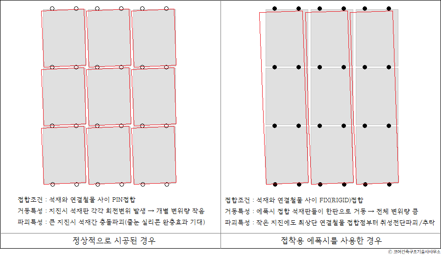 역학적으로 지진시 파괴될 가능성이 지극히 높아지고, 화학적으로도 시간이 지남에 따라 그 에폭시의 접착력이 점차 사라진다.