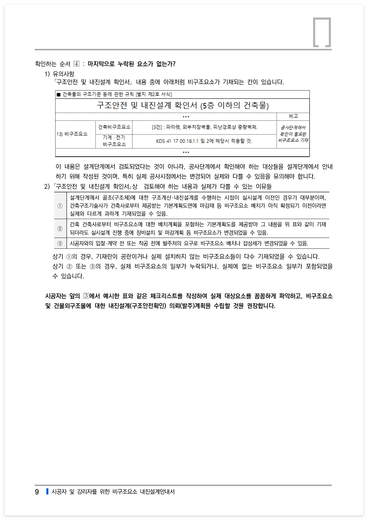 비구조요소의 내진설계. 현장에서는 「내진설계」라는 용어로 인하여 이미 설계단계에서 검토된 것으로 착각하거나, 설계단계에서 검토되어야 하는 것으로 오해하는 경우가 있습니다. 그러나