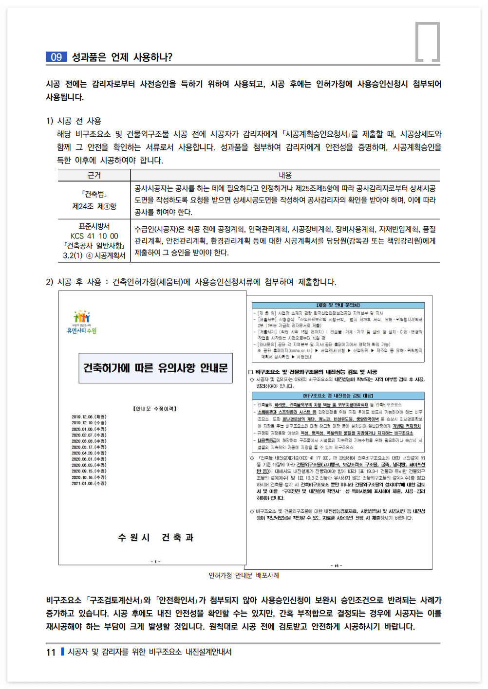 시공 전에는 감리자로부터 사전승인을 득하기 위하여 사용되고, 시공 후에는 인허가청에 사용승인신청시 첨부되어 사용됩니다.