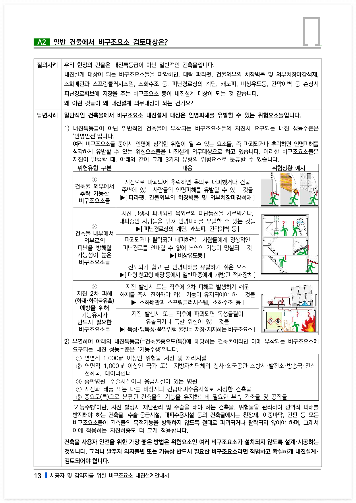 그러나 발주자 의지불변 또는 기능상 반드시 필요한 비구조요소라면 적법하고 확실하게 내진설계·검토되어야 합니다.