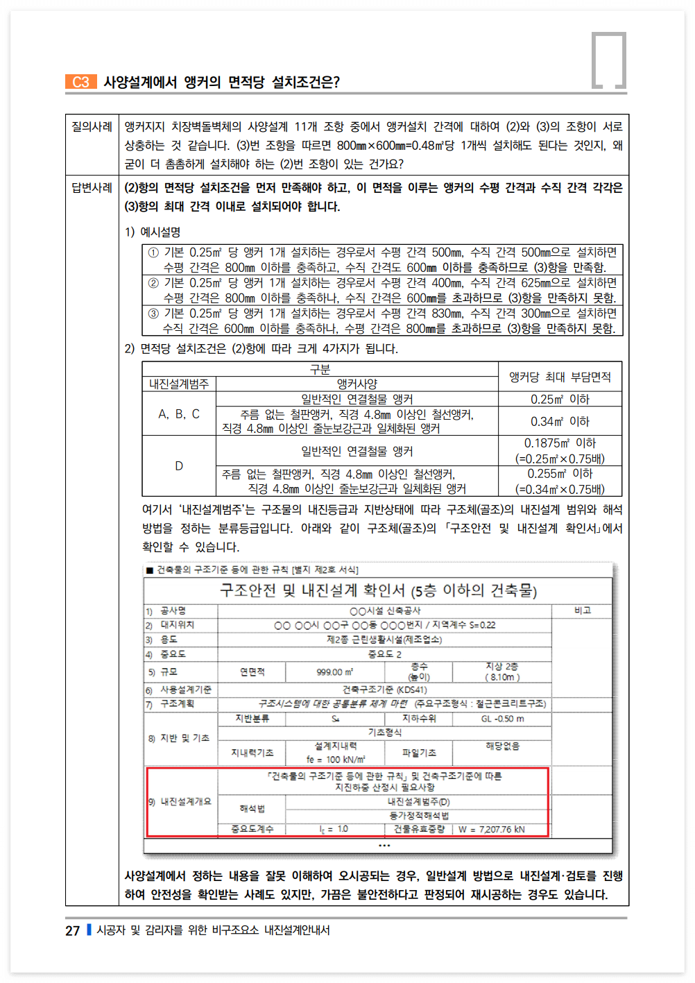 사양설계에서 정하는 내용을 잘못 이해하여 오시공되는 경우, 일반설계 방법으로 내진설계·검토를 진행하여 안전성을 확인받는 사례도 있지만, 가끔은 불안전하다고 판정되어 재시공하는 경우도 있습니다.