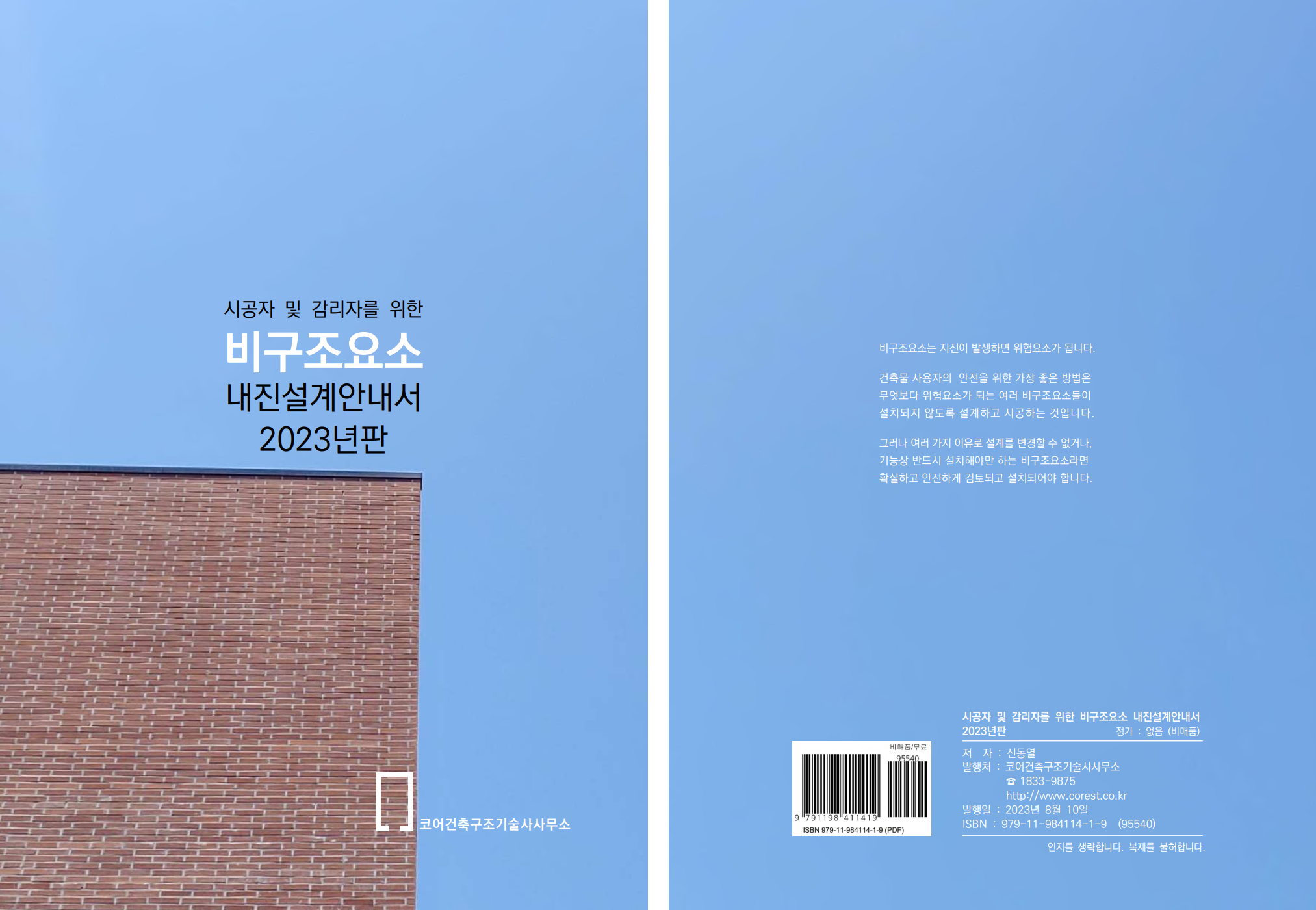 이 안내서는 비구조요소 및 건물외구조물에 대한 시공자와 감리자의 이해도를 높이고, 실무파악 및 업무처리에 도움이 되길 바라는 마음으로 작성하였으며, 2023년에 처음 펴낸 이후에 여러 문