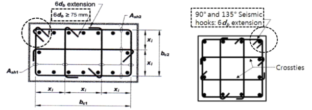 2. 띠철근에 135˚ 내진갈고리를 적용할 것.