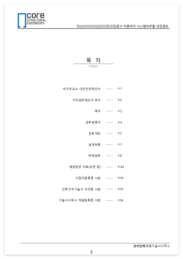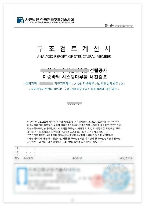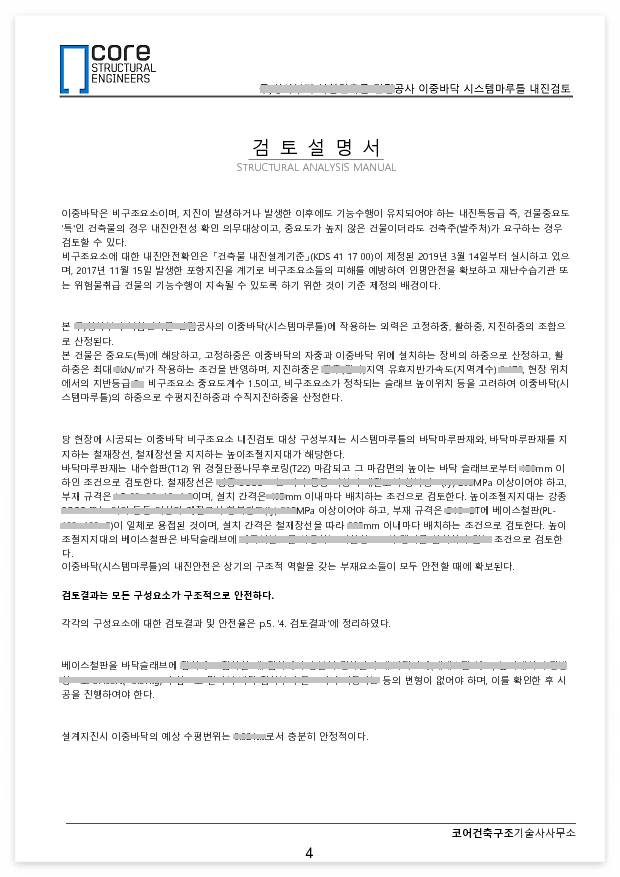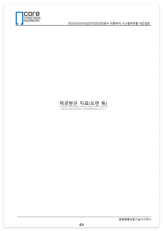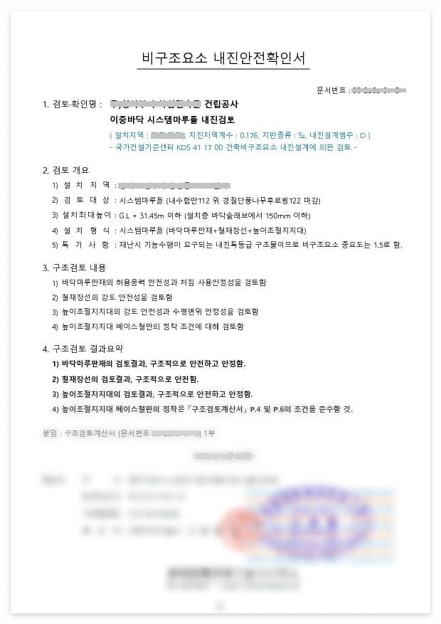 당사가 수행한 이중바닥 중 '시스템마루틀'에 대한 비구조요소 내진검토 사례의 일부를 아래와 같이 소개합니다.
