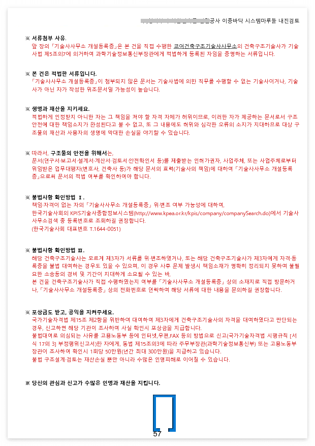 최근들어 어떤 업체인지는 알 수 없지만, '이중바닥'이 내진성능을 가지려면 베이스플레이트는 무조건 앵커로 정착해야 한다고 주장하면서 다수의 현장에 민원을 제기하는 것으로 알고 있습니다. 당연히 에폭시본드로 접착하는 것보다야 앵커로 정착하는 것이 훨씬 강한 것은 사실이지만, 내력이 100점만 충족하면 되는데 200 또는 300점으로 만들라는 무리한 주장일 수 있습니다. 그리고 그에 따른 공사비 증가는 필연적으로 발생할 것이고, 공사기간의 연장도 수반될 수 있습니다. 민원은 누구나 제기할 수 있고 때로는 사정에 대해서 잘 알지 못하더라도 제기하는 민원은 사회에 경각심을 제공하고, 사회가 보다 안전해지도록 만드는 긍정적인 트리거를 제공합니다. 그러나 그 민원을 해당 분야의 전문성을 가진 자(이중바닥제 제작·설치업체 또는 기타 이해관계인)가 전문분야에 속한 누구라도 기본적으로 아는 내용의 일부분만 또는 뭉뚱그려서 기준에서 설명하는 내용과 다른 사실을 주장하는 것이라면 그 의도가 단지 순수하게 공공의 안전만을 위한 것인지 의구심이 듭니다.