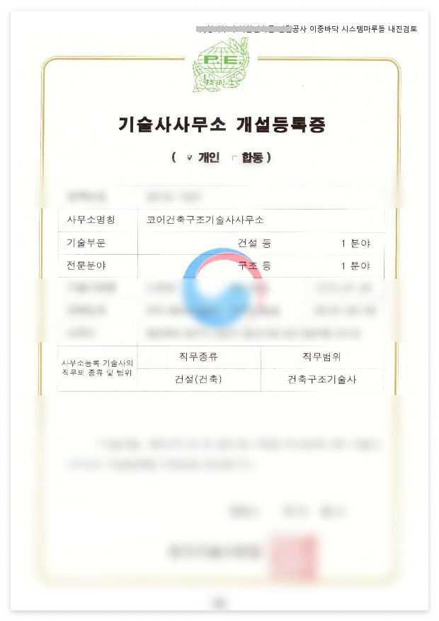'구조안전 및 내진설계 확인서'라는 서류의 상단부에 중요도가 '중요도(특)'으로 기재된 건축물이 내진특등급 건축물입니다. 내진특등급 건축물을 신축·증축·개축하거나 대수선하는 경우에 이중바닥인 'ACCESS FLOOR, OA FLOOR, 시스템마루틀' 중에 공사내용에 포함되는 것이 있다면 비구조요소 내진설계·검토의 의무대상입니다.