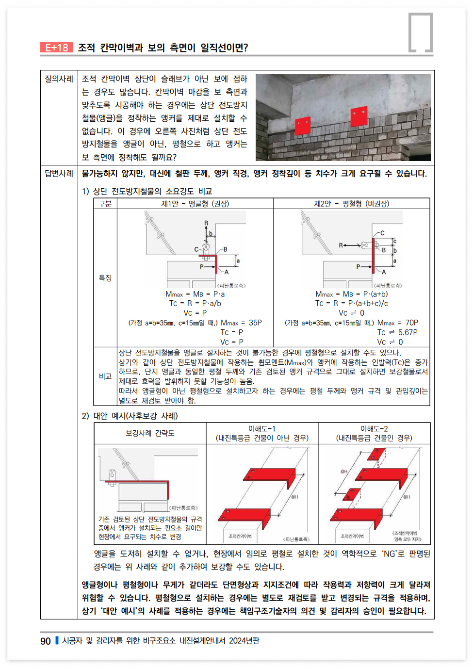상단전도방지 철판의 두께, 앵커 직경, 앵커 정착깊이 등 치수가 크게 요구될 수 있습니다.